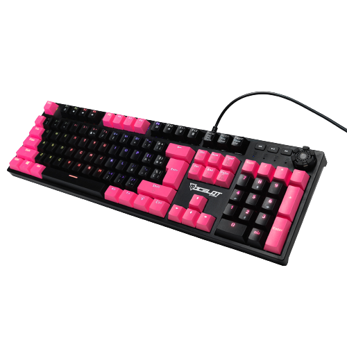 TECLADO MECANICO EXTENDIDO OCELOT/ALAMBRICO/ILUMINACION TIPO RGB CUBIERTA DE ABS/COLOR NEGRO CON ROSA/GAMER