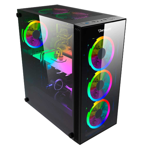 GABINETE GAMER OCELOT/NEGRO/MEDIA TORRE/SOPORTA 6X VENTILADORES 120MM/SOPORTA GPU 350MM/CRISTAL TEMPLADO/SIN FUENTE/ATX